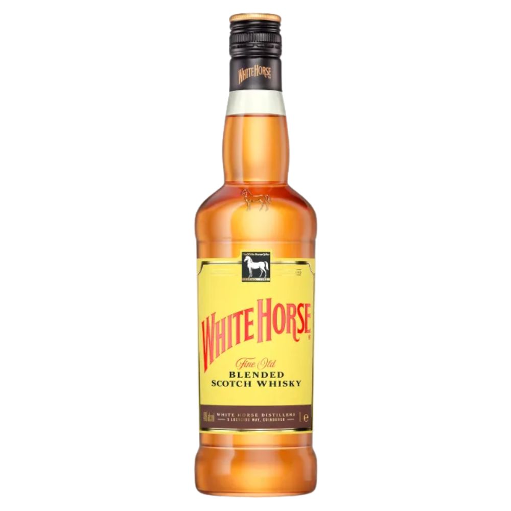 Whisky White Horse 1 litro, blended scotch escocês, com perfil equilibrado, notas levemente defumadas e ótima versatilidade para servir puro, com gelo ou em drinks.